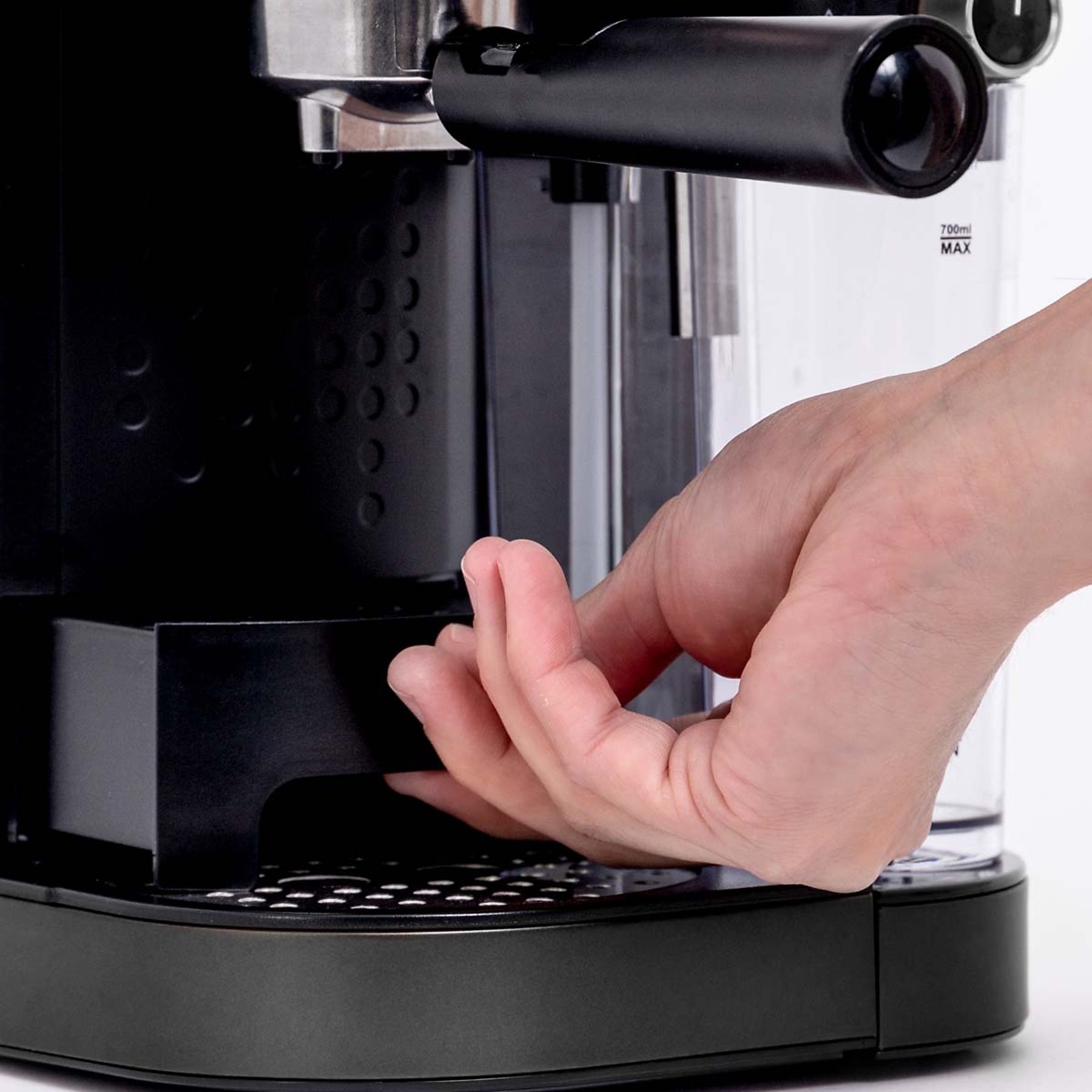 Het koffieapparaat heeft 3 handige knoppen waarmee u eenvoudig aangeeft voor welke type koffie u wilt gaan. Kies eerst uw favoriete gemalen koffie en vul daarmee het filter. Er worden twee filters meegeleverd voor een enkele of dubbele espresso. Met de meegeleverde maatlepel en stamper, heeft u altijd de juiste hoeveelheid koffie. Vervolgens voegt u naar wens uw favoriete type melk toe, et voilà – de BluMill Koffiemachine doet de rest! Het apparaat warmt snel op en heeft een uitneembaar afdruipprooster en uitschuifbaar plateau, waardoor hij geschikt is voor zelfs de kleinste koffiekopjes.