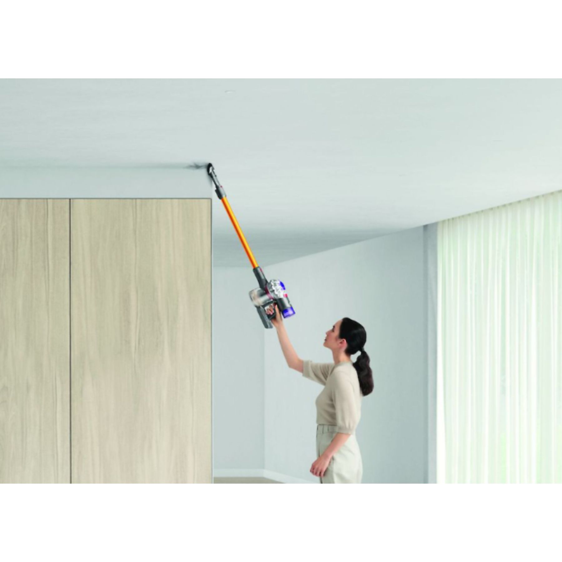 Comfortabel en hygiënisch schoonmaken De Dyson V8 Absolute heeft een licht en ergonomisch ontwerp waarmee je gemakkelijk hoge en lage plekken bereikt. Dankzij het compacte design berg je hem na gebruik ook weer eenvoudig op. De steelstofzuiger is onder andere voorzien van een MotorBar-vloerzuigmond en een schroefvormige, klitvrije borstel. Met deze opzetstukken verwijder je onder andere huisdierharen razendsnel van huisdiermanden, autostoelen, trappen en meer. De stofzuiger beschikt daarnaast over een hygiënisch mechanisme waarmee je het stofreservoir in één handeling leegt. Zo kom je niet in aanraking met vuil.