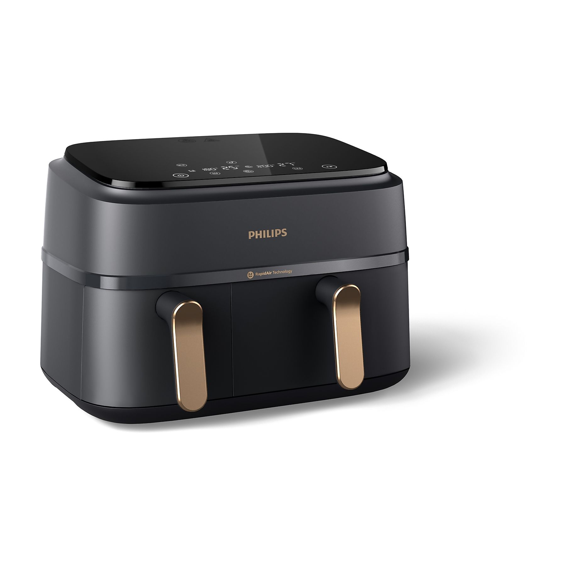 In tegenstelling tot andere airfryers van Philips heeft dit model niet één, maar 2 manden. De linkermand heeft een capaciteit van 3 liter, de rechter 6 liter. Zo bereid je tot wel 6 porties eten tegelijkertijd! Bovendien zet je makkelijk een hele maaltijd in één keer op tafel. Bereid bijvoorbeeld vlees en aardappels krokant in de grote mand, terwijl je in de kleine mand groentes gaart. Beide manden zijn los van elkaar in te stellen voor verschillende etenswaren, maar er is ook een handige kopieerfunctie. Tot slot is dankzij de timerfunctie al je eten tegelijk klaar, ook met verschillende bereidingstijden.