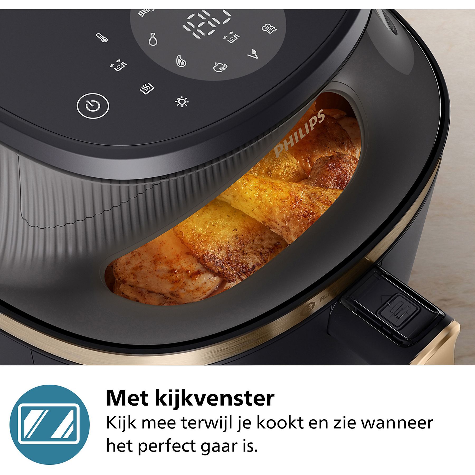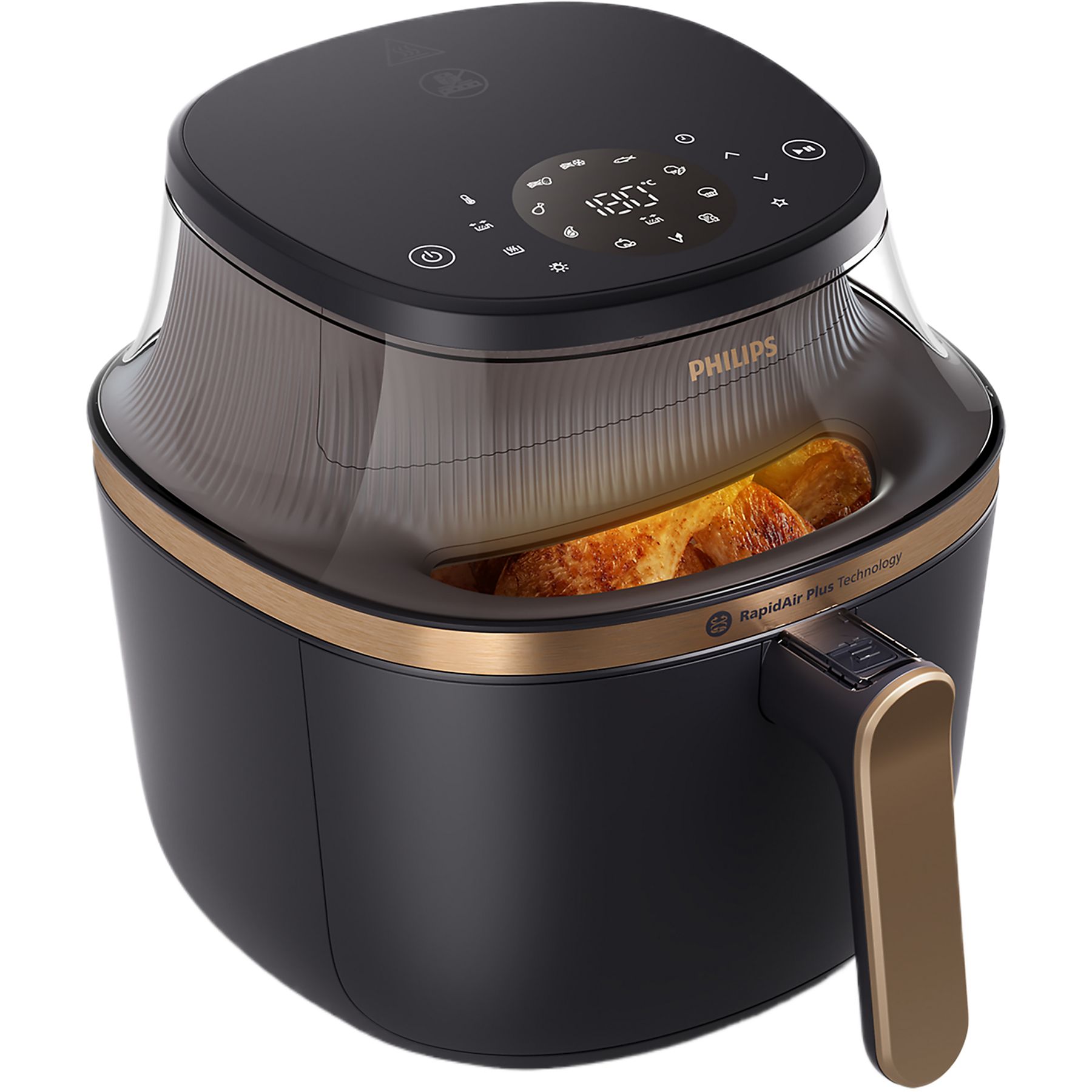 Deze handige airfryer met stijlvol ontwerp is uitgerust met een kookvenster. Zo houd je een oogje op je gerecht en hoef je niet te gissen wanneer het gaar is. Hierdoor bereik je steeds een optimaal eindresultaat. Het toestel biedt met zijn inhoud van 7,2 liter bovendien voldoende capaciteit voor al je gezinsmaaltijden. Er is ruimte voor bijvoorbeeld 1.400 gram groenten, 10 kipdrumstiks, 6 moten zalm of 9 muffins. Het speciaal ontworpen frituurmandje houdt voedsel gescheiden van vet dat zich tijdens het garingsproces in de pan verzamelt. Op die manier druppelt tot wel 40% overtollig vet weg voor gezondere, smaakvolle maaltijden, zonder in te leveren op smaak of textuur.