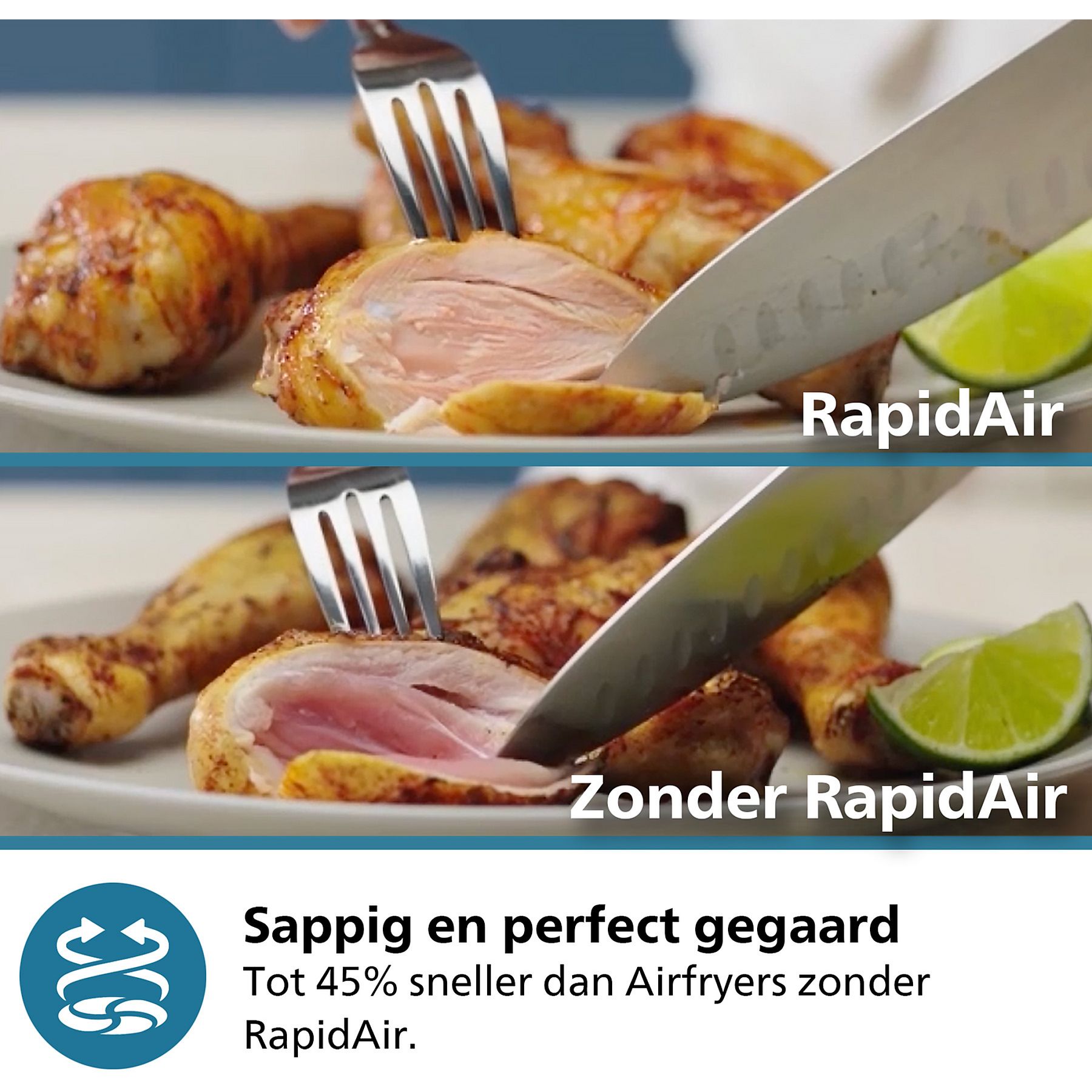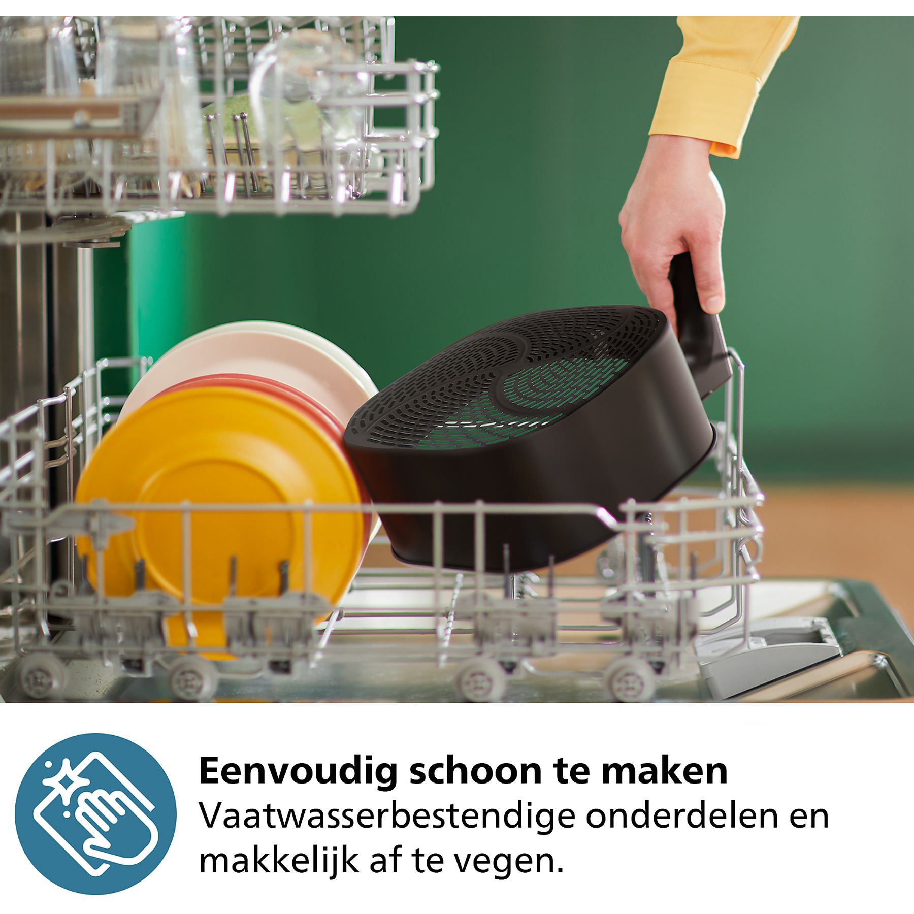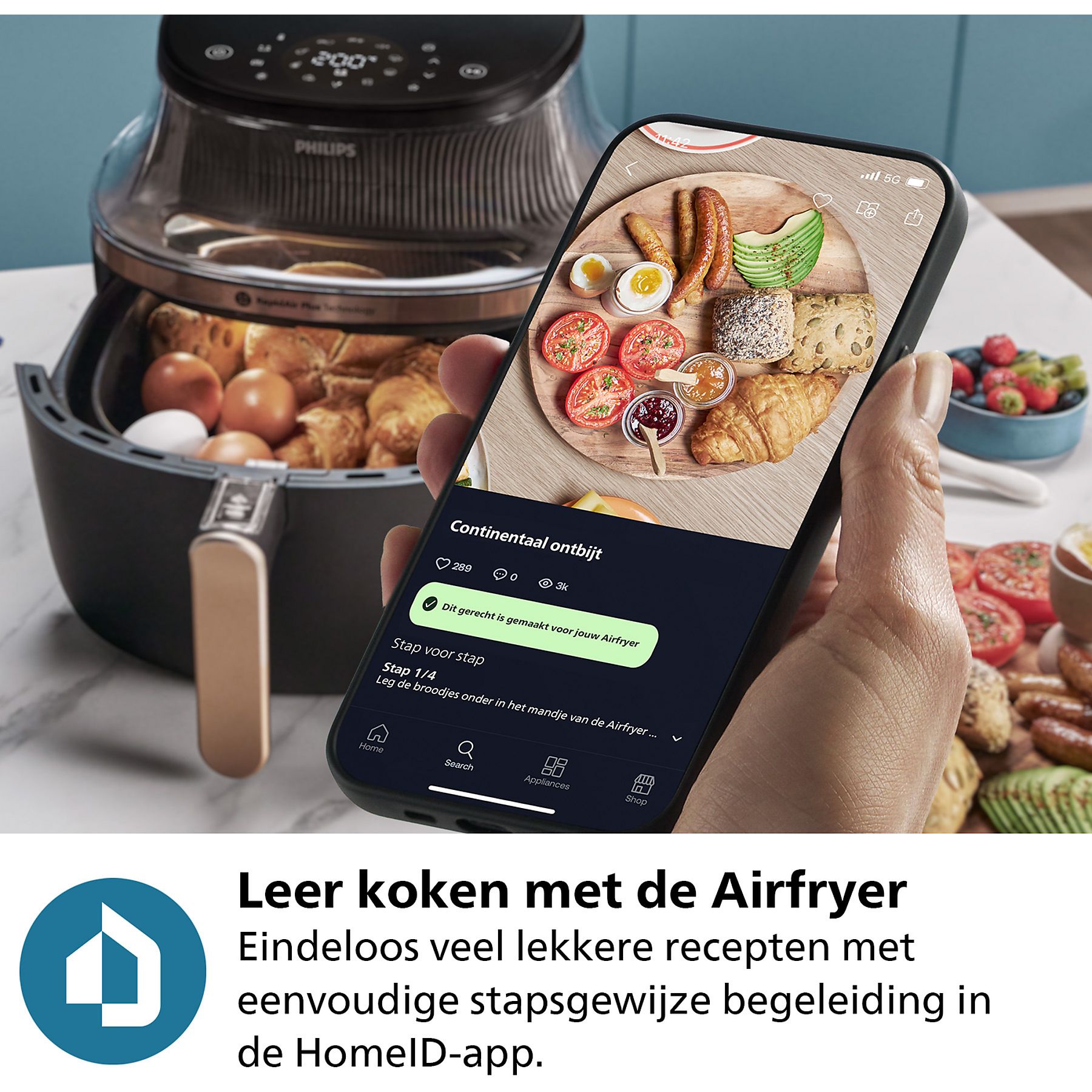 Dankzij de unieke RapidAir Plus-technologie met stervormige luchtcirculatie blijft elk gerecht sappig van binnen en krokant van buiten. Het resultaat? Perfect gebakken frietjes, malse kipdrumsticks of knapperige groenten – keer op keer. Geen olie nodig, maar wél de smaak waar je naar verlangt. Het unieke stervormige ontwerp laat hete lucht met een snellere luchtstroom rondom en door de ingrediënten circuleren, zodat alles gelijkmatig vanbinnen en vanbuiten gaart. Hiermee zet je keer op keer smakelijke zelfbereide maaltijden op tafel. De airfryer heeft bovendien een antiaanbaklaag en uitneembare onderdelen die vaatwasmachinebestendig zijn, zodat je minder tijd kwijt bent aan schoonmaken. Zo profiteer je van meer tijd om te genieten van je favoriete maaltijden. Inspiratie nodig ? Gebruik de HomeID-app om eenvoudig te koken. De app begeleidt je stap voor stap met meer dan 10.000 recepten.