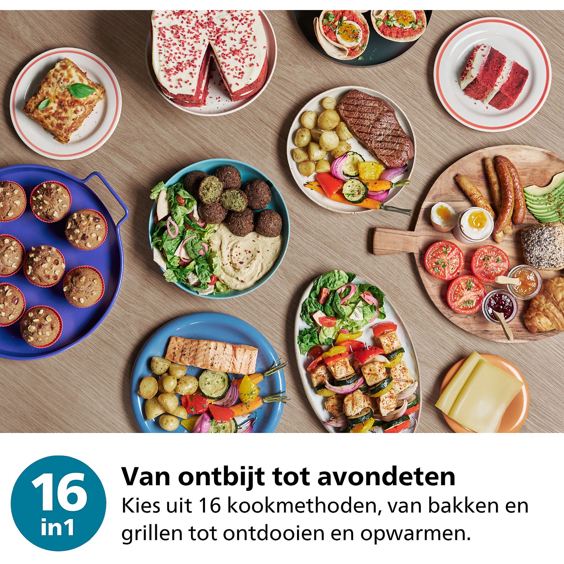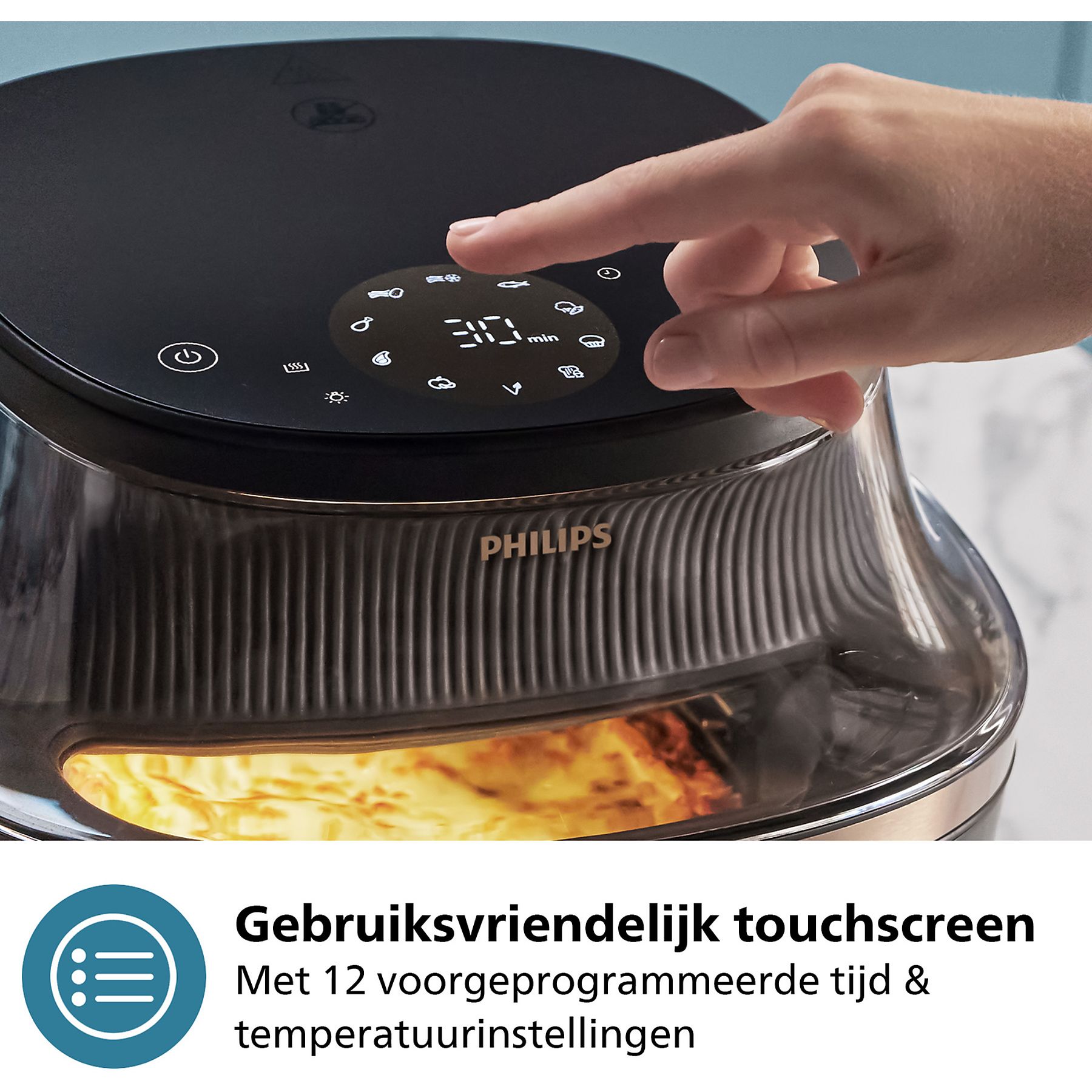 Het gebruiksvriendelijke aanraakdisplay biedt een ruime keuze uit 12 vooraf ingestelde functies: diepvriesfriet, verse friet, kipdrumsticks, vlees, vis, ontbijt, groenten, muffins, veganistisch, gedroogd fruit, warm houden, en een knop waarmee je jouw favoriete instellingen opslaat. Je gaat bovendien verder dan alleen heteluchtfrituren met talloze bereidingsmethoden binnen handbereik. Maak een ontbijt, lunch én diner zonder ooit de oven aan te zetten. Kies uit 16 bereidingsfuncties, van bakken en grillen tot ontdooien en opwarmen. De instellingen variëren van zo laag als 40℃ en zo lang als 24 uur, bijvoorbeeld voor drogen en fermenteren. Bespaar tijd én stroom : je bereidt tot 50% sneller en bespaart tot wel 70% meer energie wanneer je kookt met de Philips Airfryer in plaats van de klassieke oven: perfect voor drukke doordeweekse dagen!